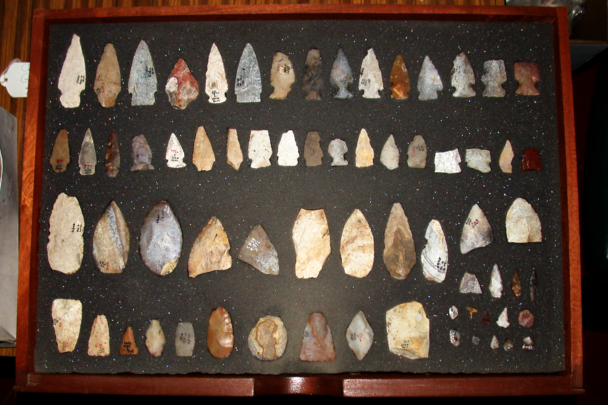 Important group of tools made of stone such as silex or pedernal. We see arrowheads, used for war and for hunting. The lower rows show knives used for a variety of purposes. The exemplars we see here are the basic tools and materials used by the ...