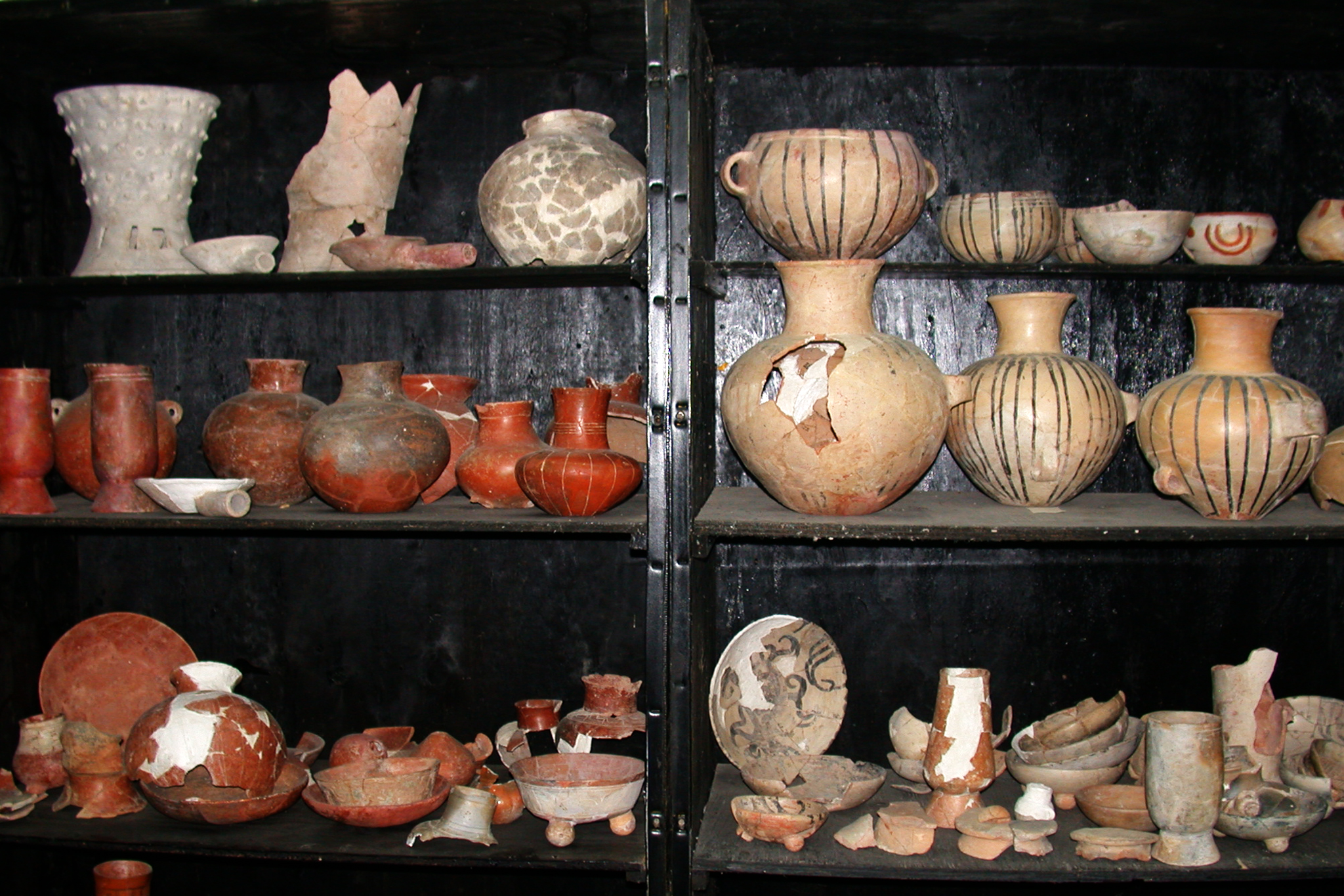 Pottery vessels and shards found at Chichen Itza. Part of what the archaeological team does is track, catalog, and store the millions of often pebble-sized pottery fragments found on the sites. They are often able to piece together larger ...
