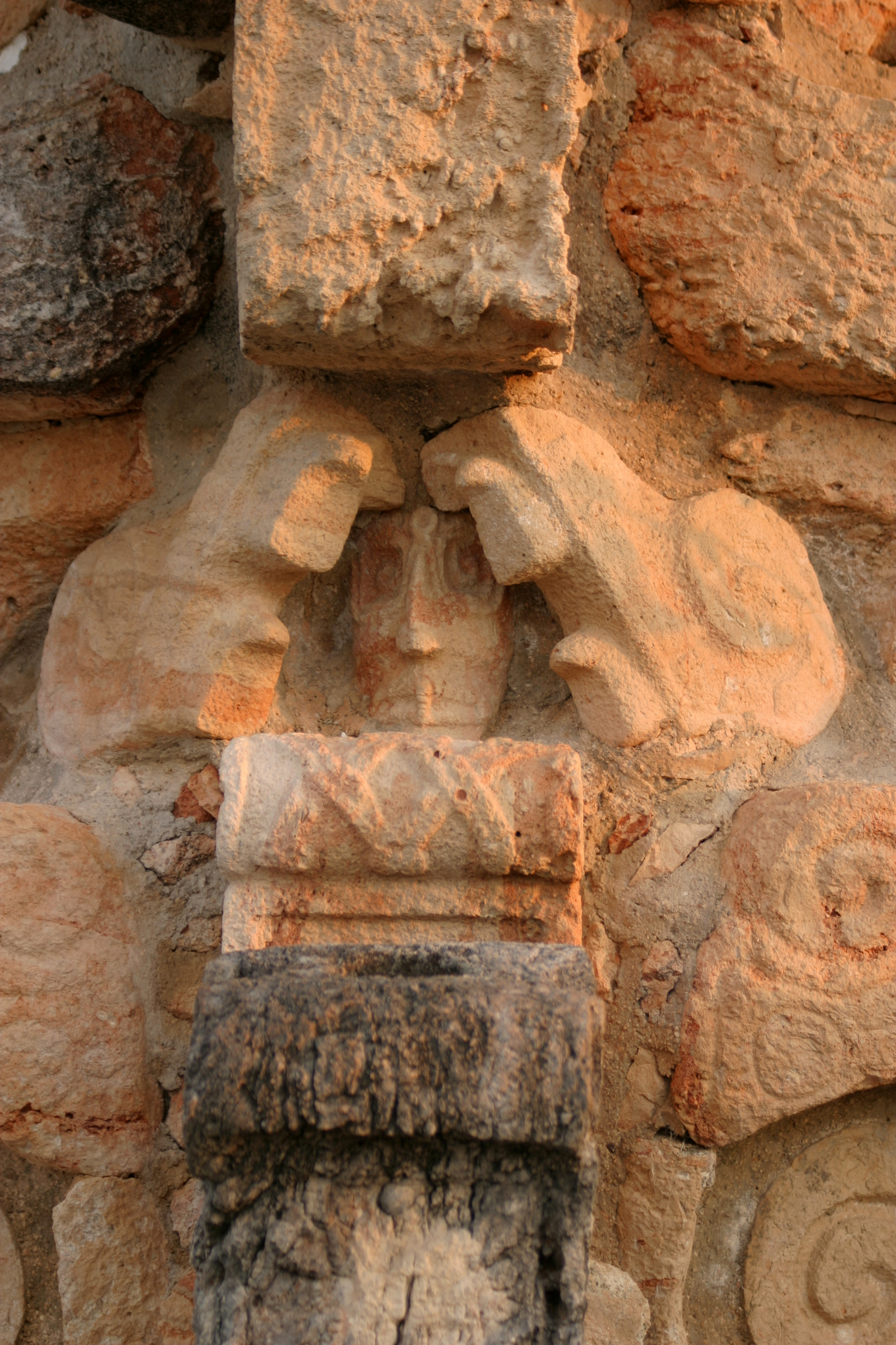 This is the figure emerging from the earth monster's mouth on the Temple of the Macaws. It is the face of an old person (look at the eyes) who is returning to the earth; in other words, an ancestor. (Image Credit: Michelle Williamson, Ideum)