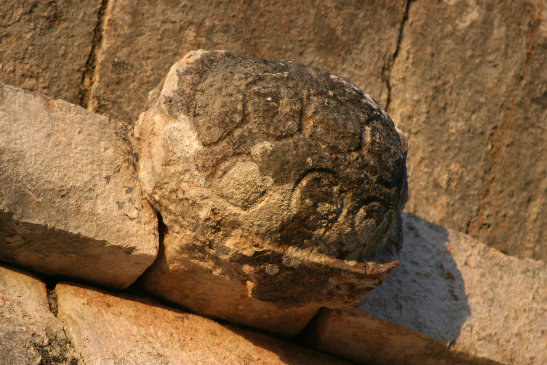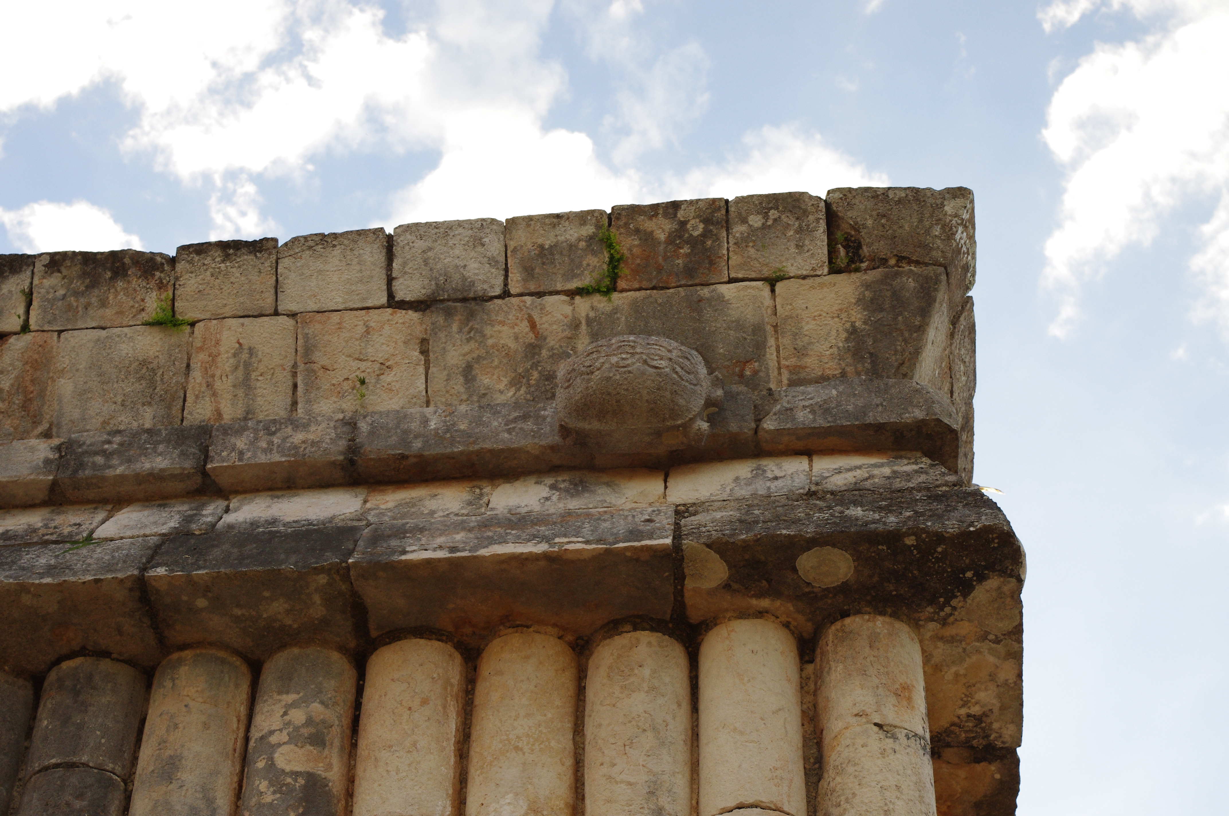 Detail of one of the turtles enveloping the upper moulding of the House of the Turtles. The turtles relate to the cult of water. (Image Credit: Jim Spadaccini, Ideum)
